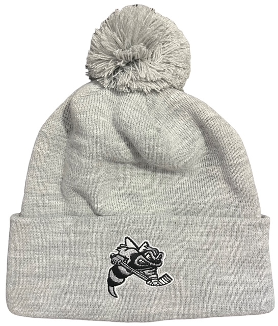 Zimná čiapka sivá s bombuľou a s lemom čiernobiely sršeň