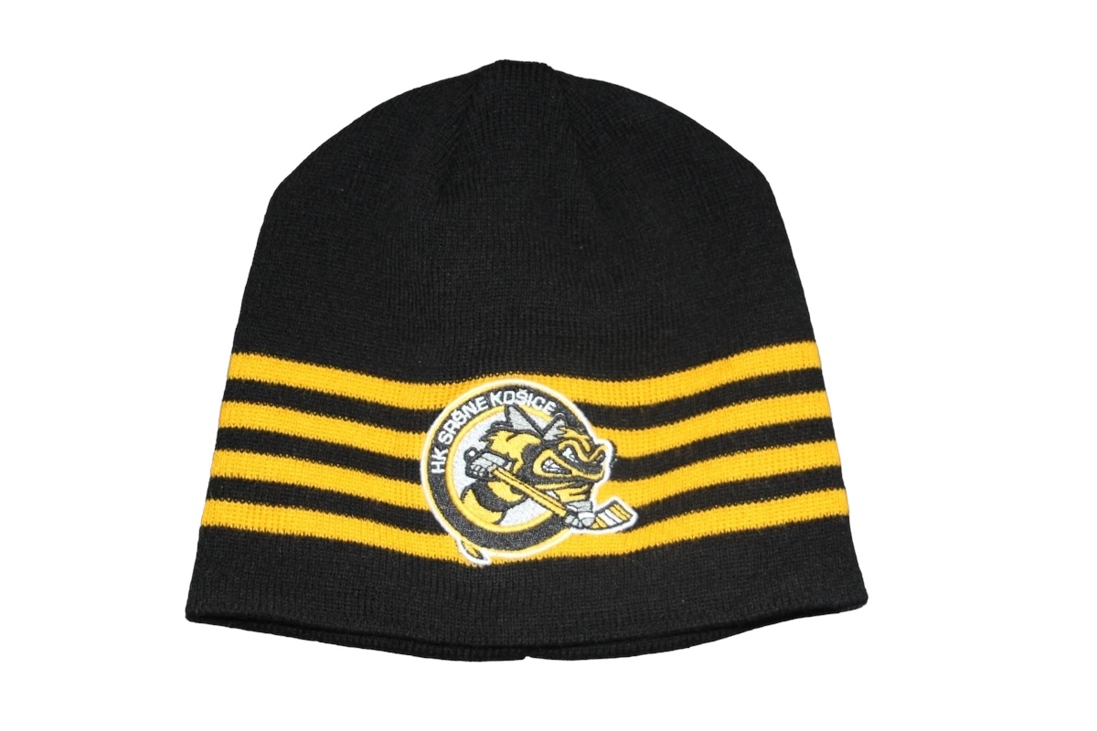 Zimná čiapka zo žltými pruhmi a farebným logom
